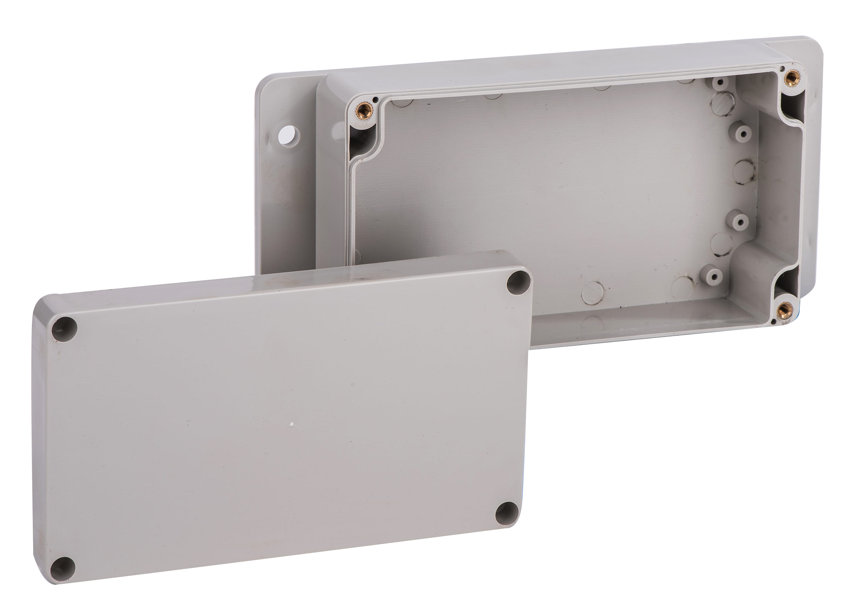 盒體與盒蓋以6只M4不銹鋼螺釘固定, 盒體四角嵌帶螺紋銅柱