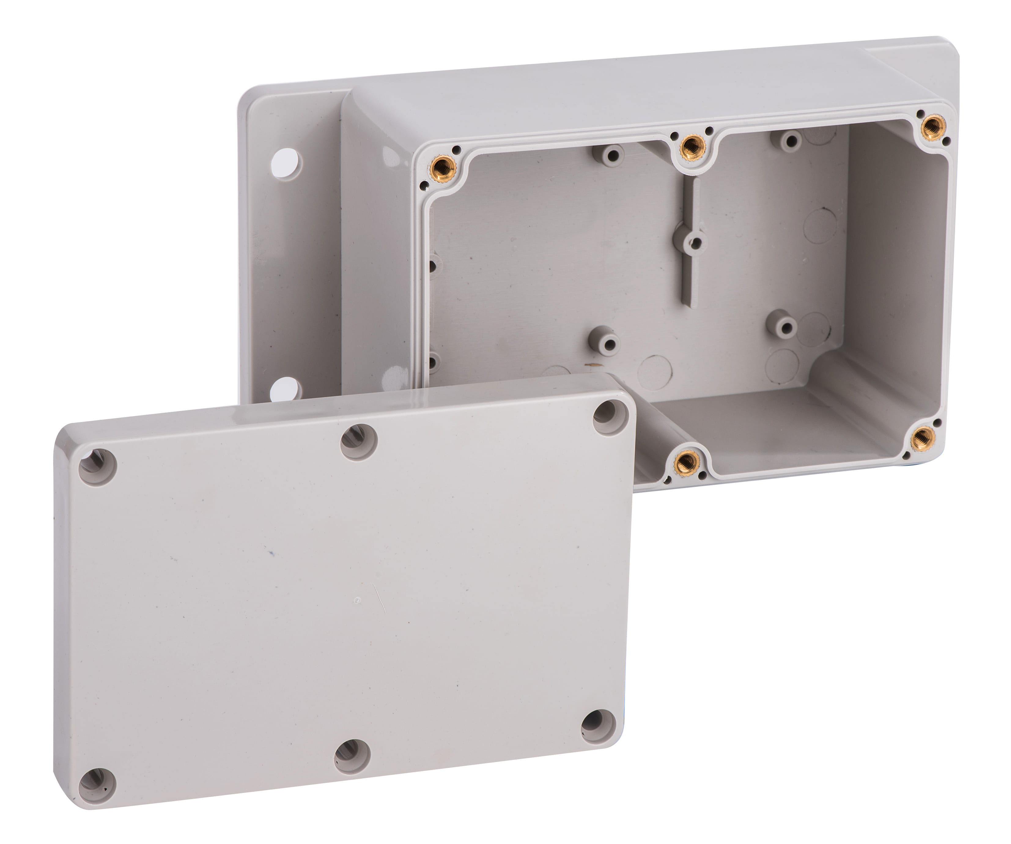 盒體與盒蓋以6只M4不銹鋼螺釘固定, 盒體四角嵌帶螺紋銅柱