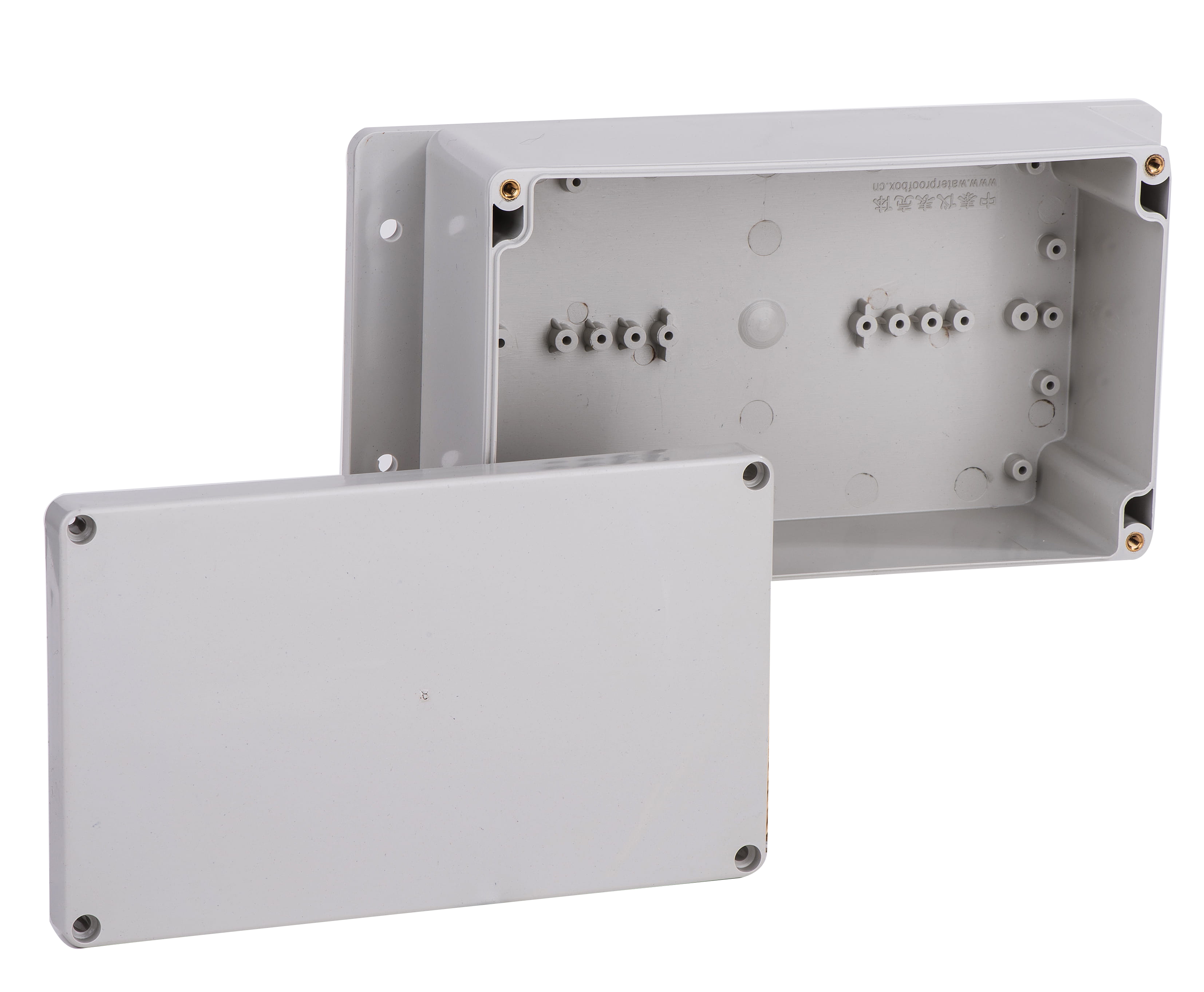 盒體與盒蓋以6只M4不銹鋼螺釘固定, 盒體四角嵌帶螺紋銅柱