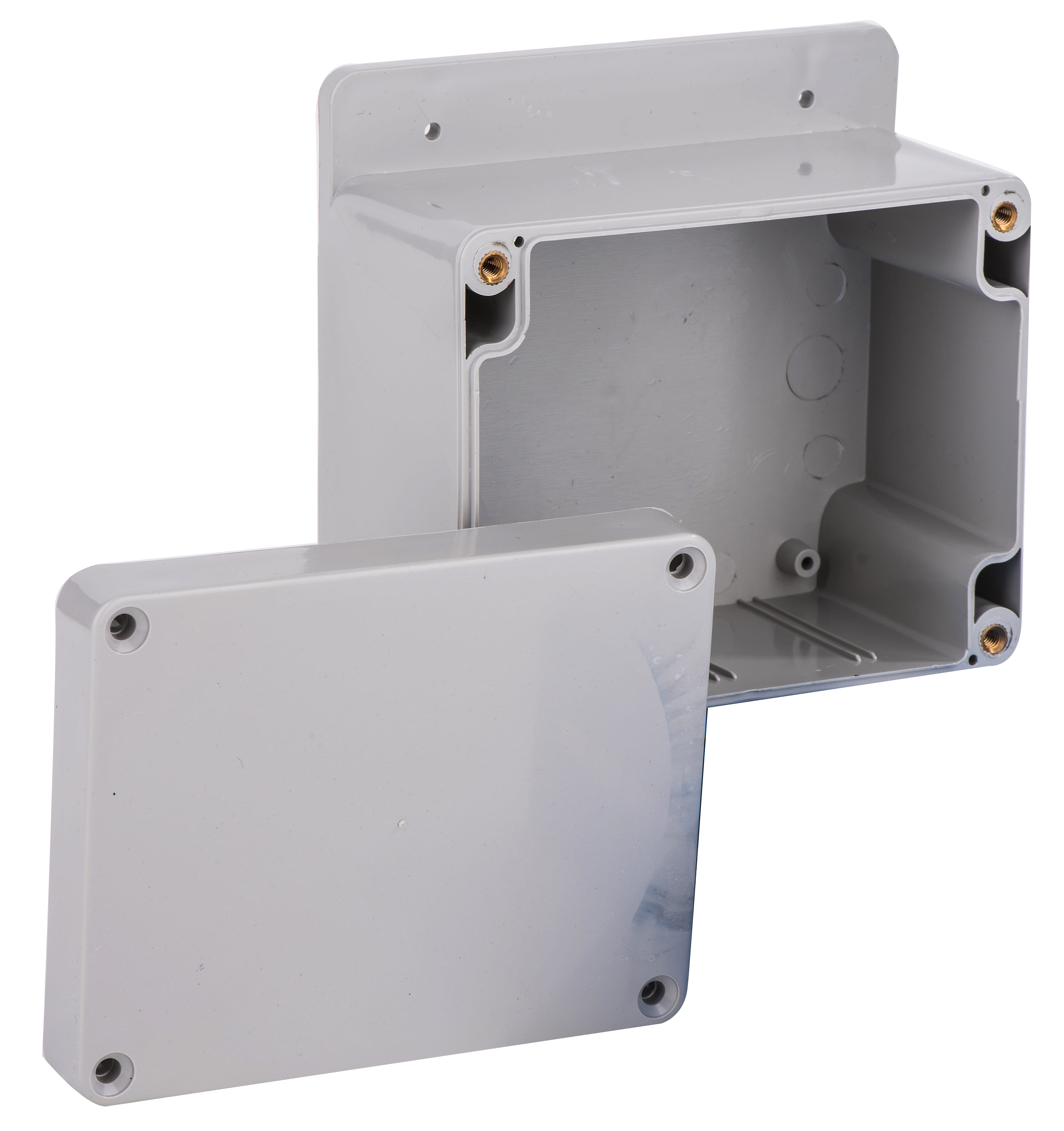 盒體與盒蓋以6只M4不銹鋼螺釘固定, 盒體四角嵌帶螺紋銅柱