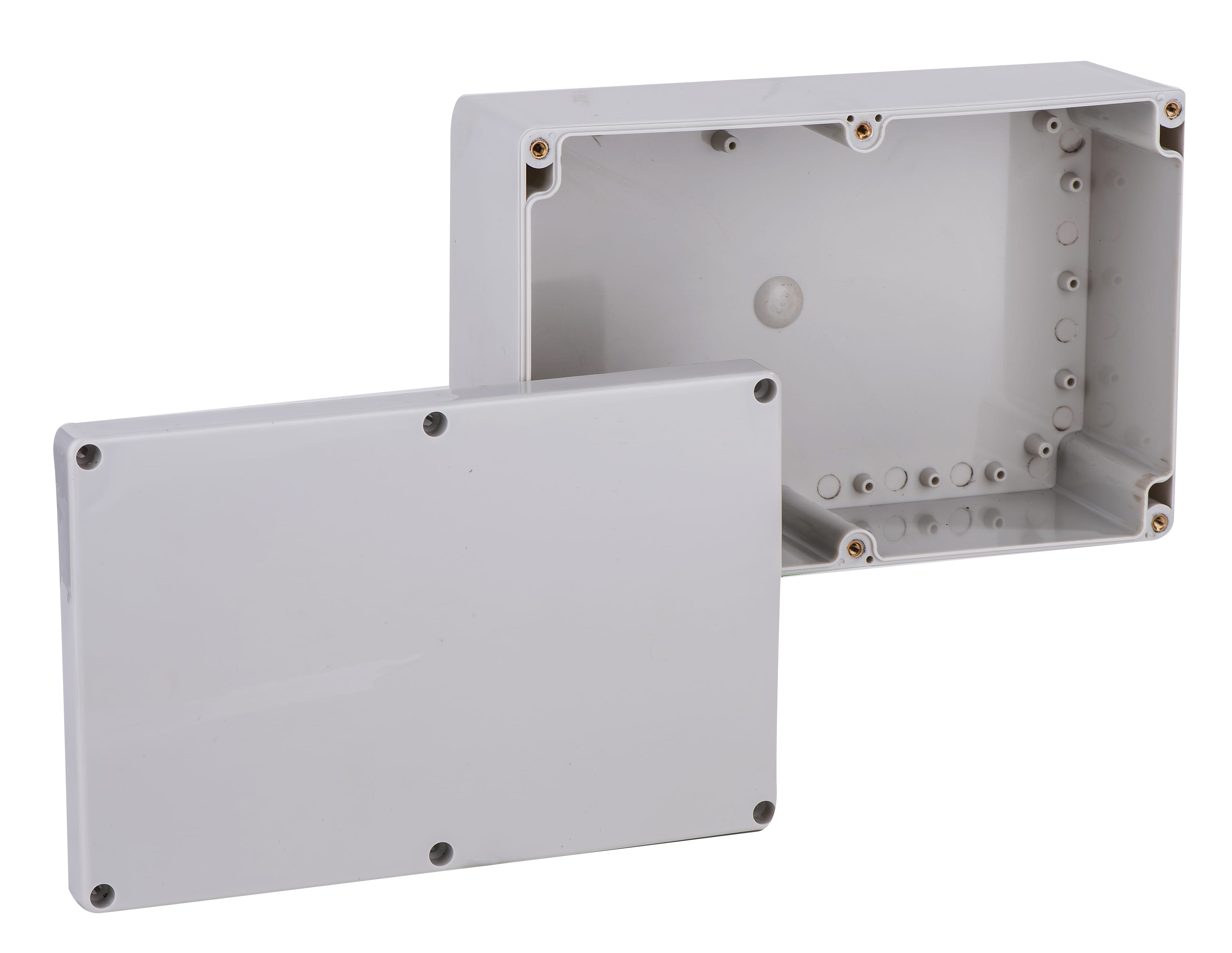 盒體與盒蓋以6只M4不銹鋼螺釘固定, 盒體四角嵌帶螺紋銅柱