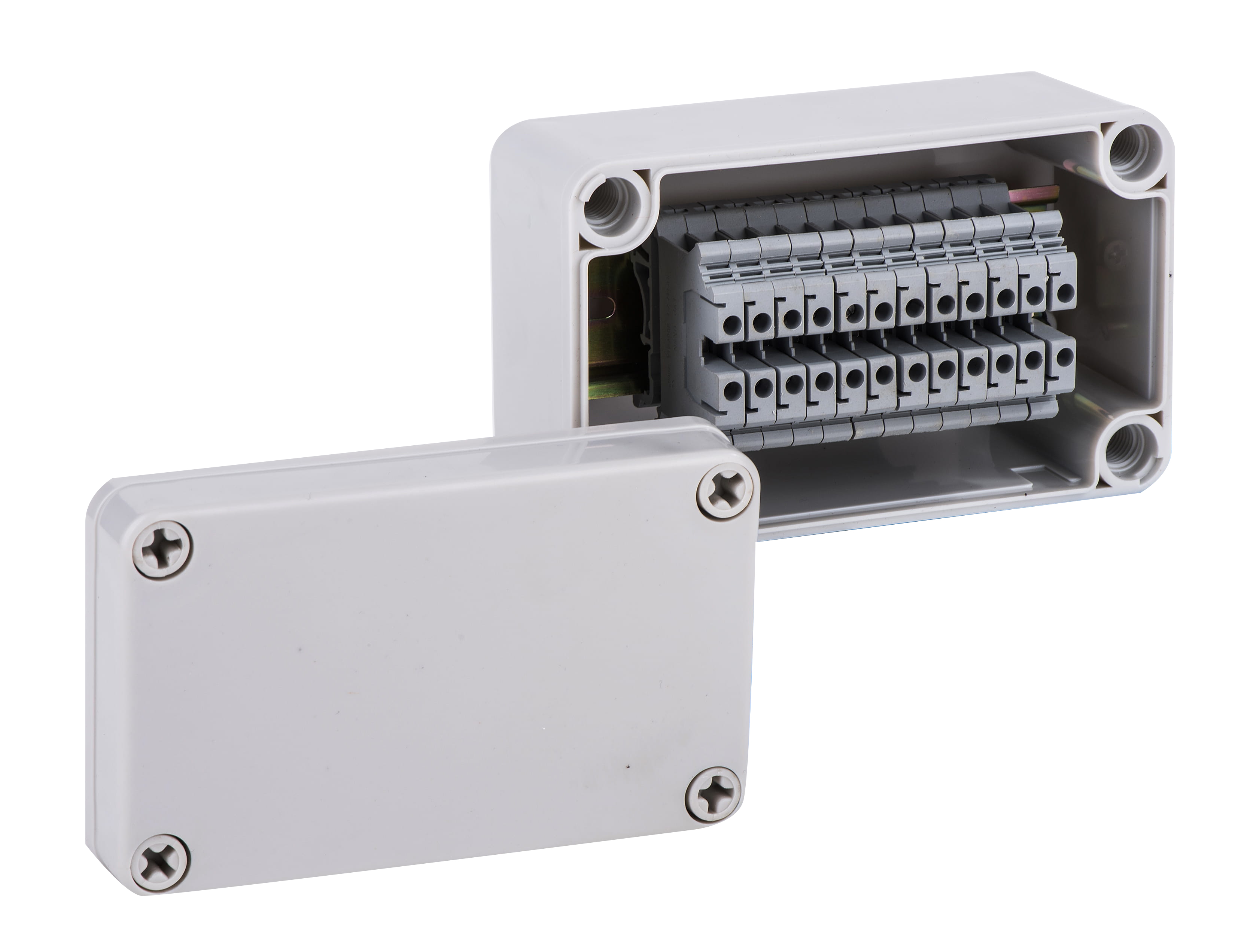 盒體與盒蓋以6只M4不銹鋼螺釘固定, 盒體四角嵌帶螺紋銅柱