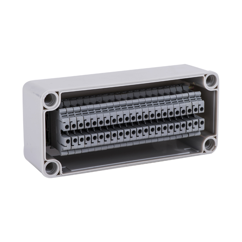 盒體與盒蓋以6只M4不銹鋼螺釘固定, 盒體四角嵌帶螺紋銅柱